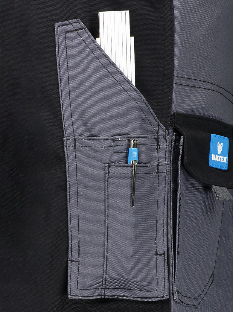 - rechts aufgesetzte Metertasche mit Zusatztasche und Stifthalter