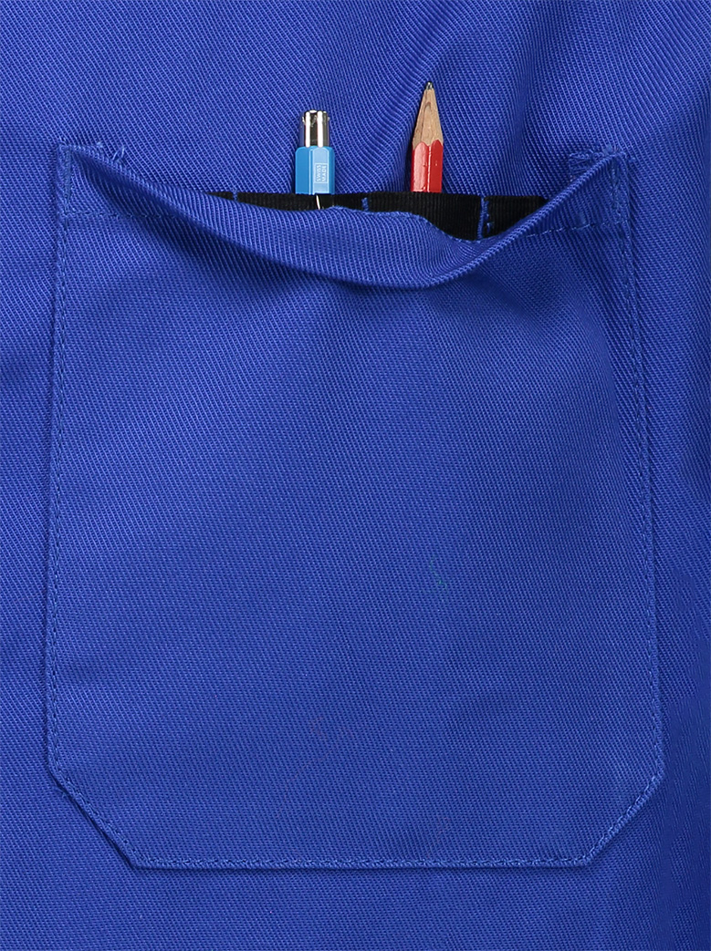 - zwei aussen liegende Brusttaschen mit Druckknopfpatte