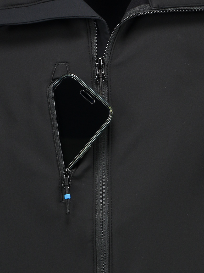 - stretch Softshell ca. 310gr./m2 mit regenabweisender Oberflächenbehandlung und angenehmer Fleece-Innenseite