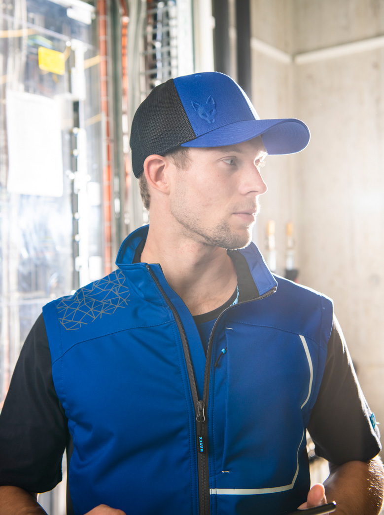- Rückseite aus tonalem, elastischem Trucker Mesh