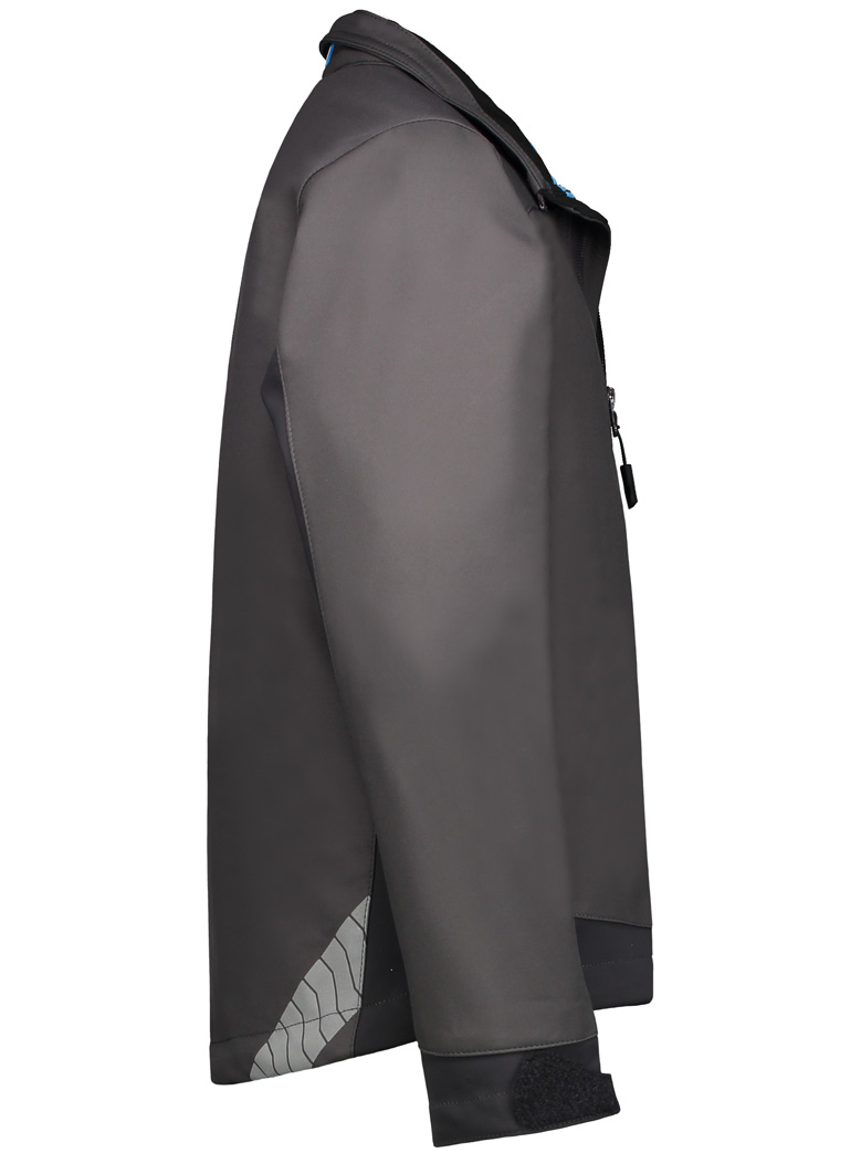 Für diese Softshelljacke verwenden wir einen Materialmix aus zwei unterschiedlich dehnbaren Softshells. Im Torsobereich, wo Langlebigkeit wichtig ist, wird ein scheuerbeständiger Softshell mit gewobenem Oberstoff eingesetzt. Seitlich verfügt die Jacke über einen hochelastischen 4-Wege Stretch Softshell. Dieser sorgt für einen perfekten Sitz. Auch bei bewegungsintensiven Aktivitäten. Beide Softshellstoffe sind mit einer Membrane ausgerüstet und sind dadurch wasserdicht und 100% winddicht. Die Nähte der Softshelljacke sind nicht verschweisst und dadurch nur bedingt wasserfest.