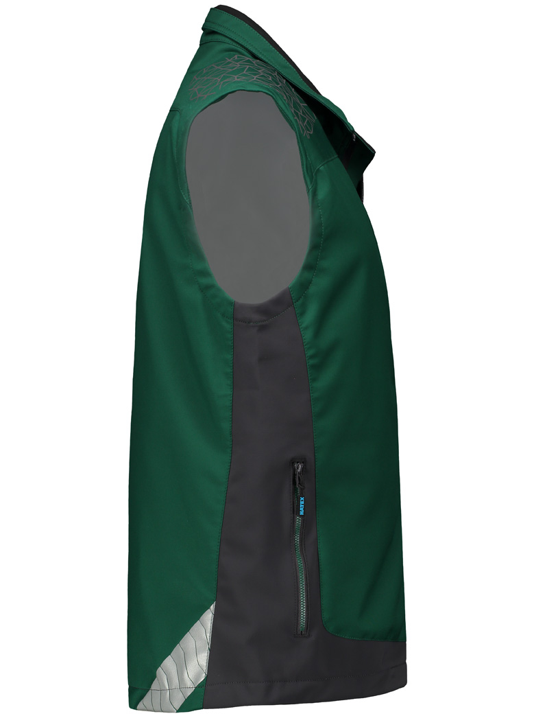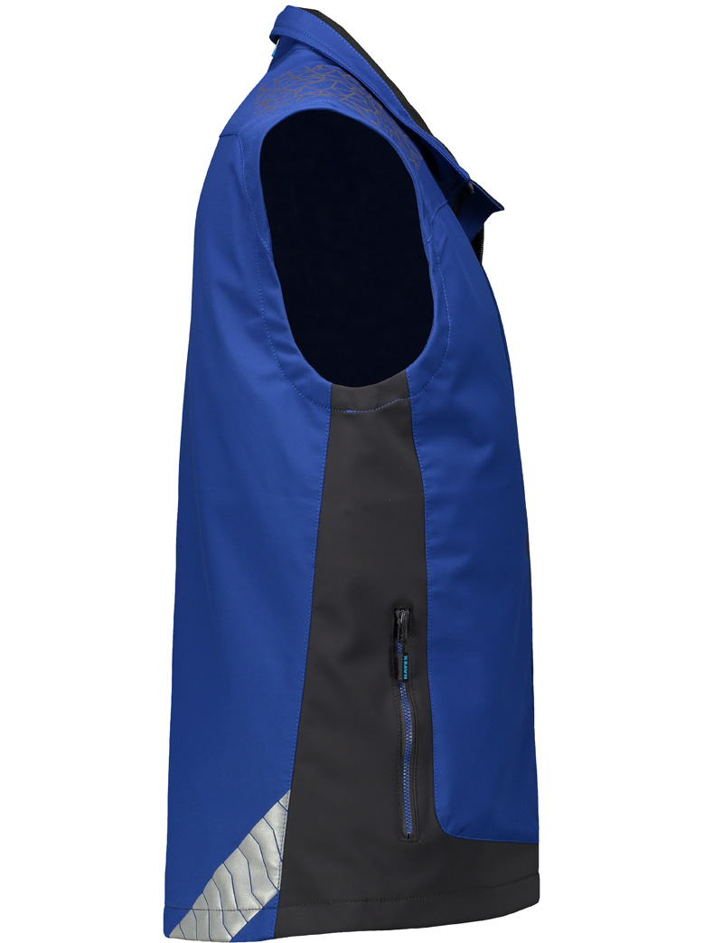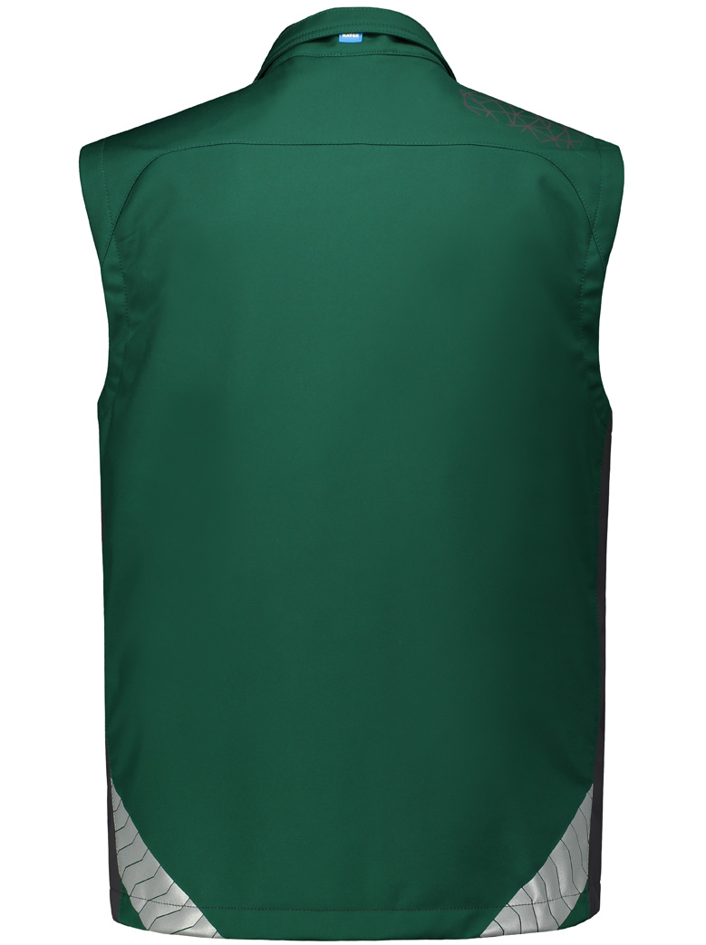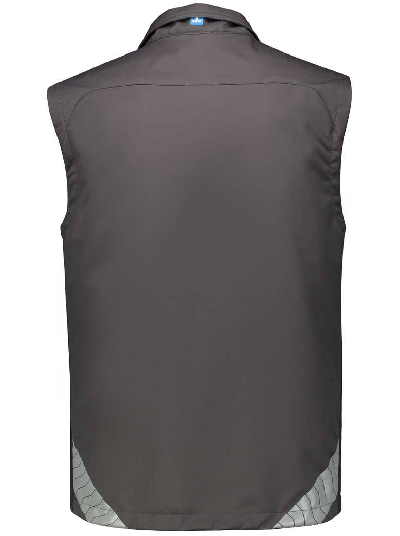 Dieses Gilet schützt nicht nur zuverlässig vor Wind und Wetter, sondern punktet dank des hochelastischen Stretch-Softshells an den Seiten auch mit einer perfekten Passform – selbst bei bewegungsintensiven Arbeiten. Sehr komfortabel sind auch das Fleece im Nackenbereich, der Stehkragen sowie die Brust- und Seitentaschen.