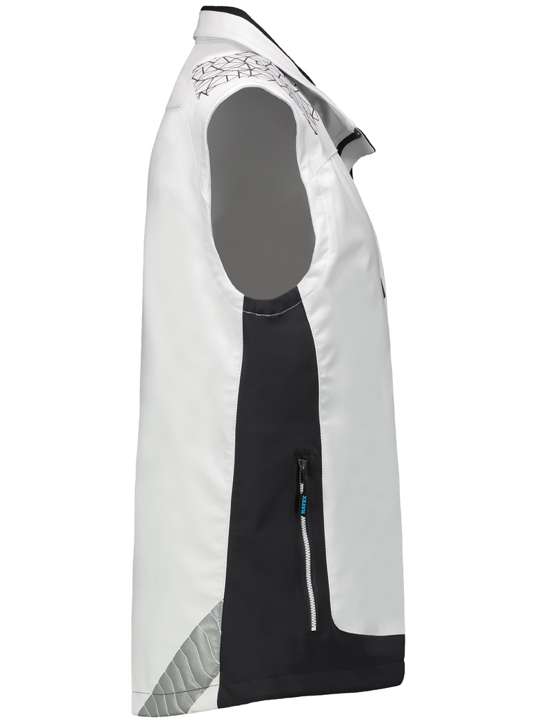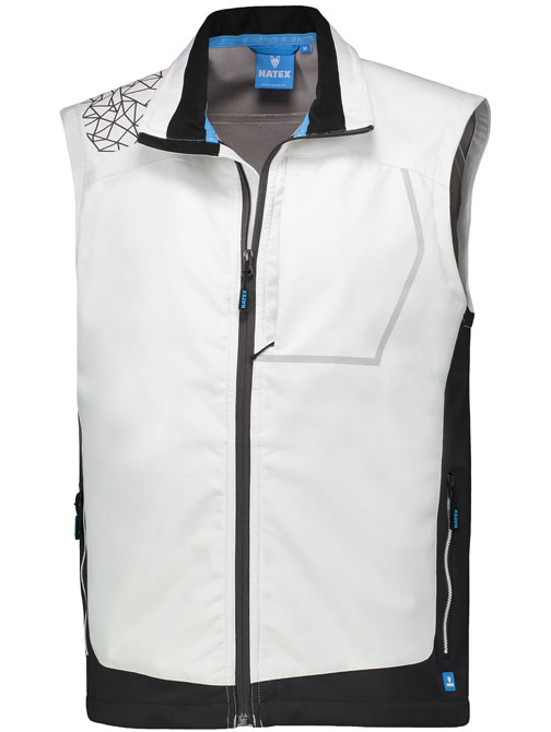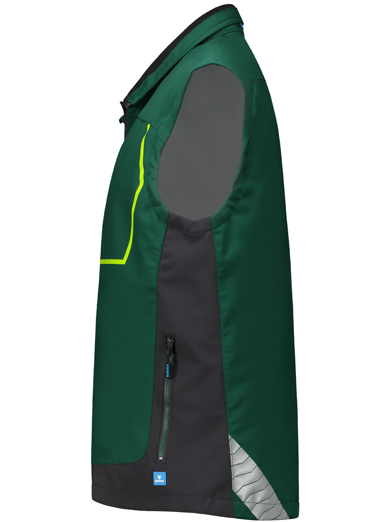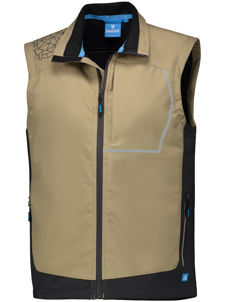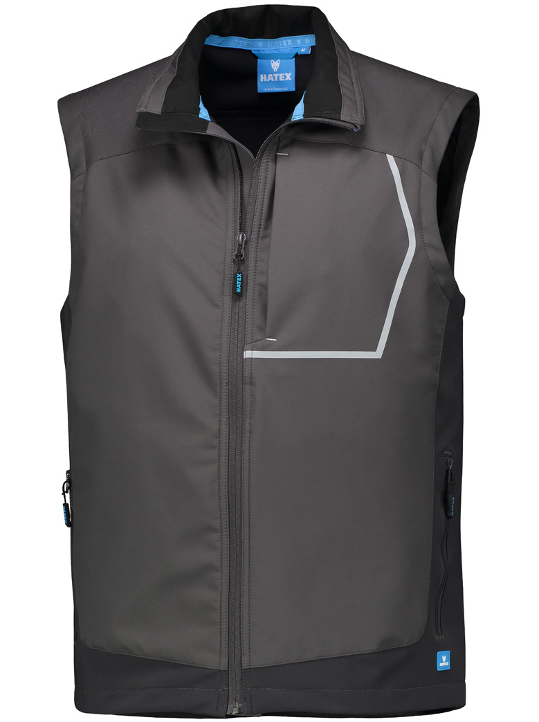 Dieses Gilet schützt nicht nur zuverlässig vor Wind und Wetter, sondern punktet dank des hochelastischen Stretch-Softshells an den Seiten auch mit einer perfekten Passform – selbst bei bewegungsintensiven Arbeiten. Sehr komfortabel sind auch das Fleece im Nackenbereich, der Stehkragen sowie die Brust- und Seitentaschen.