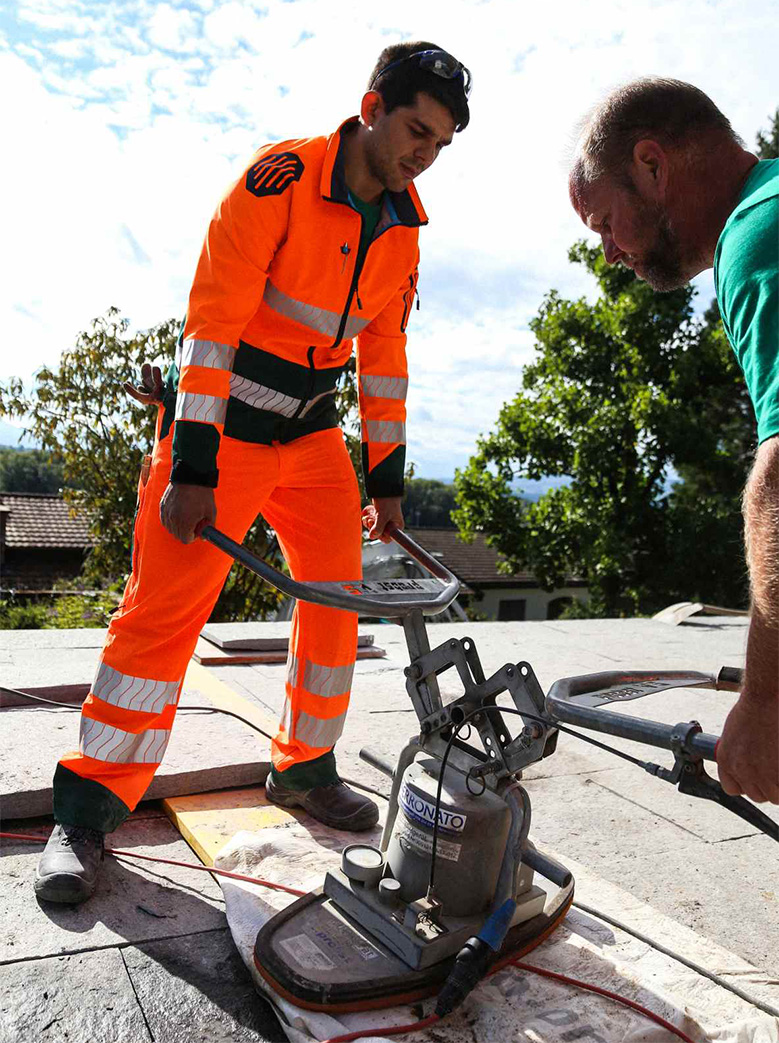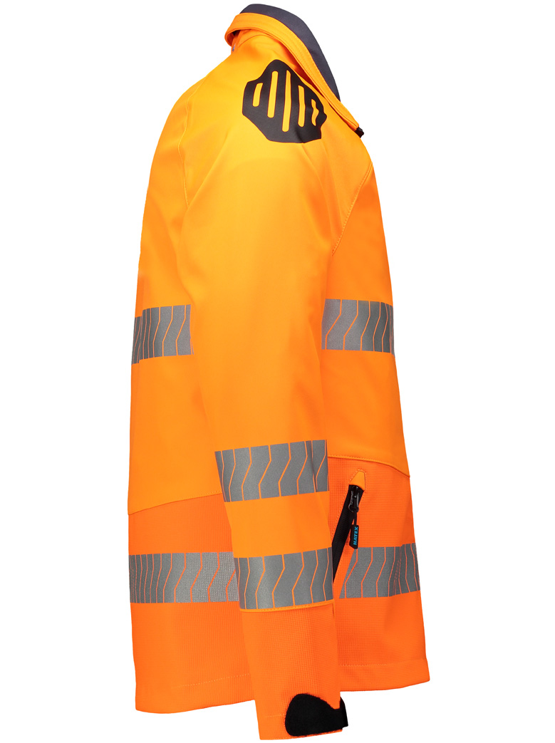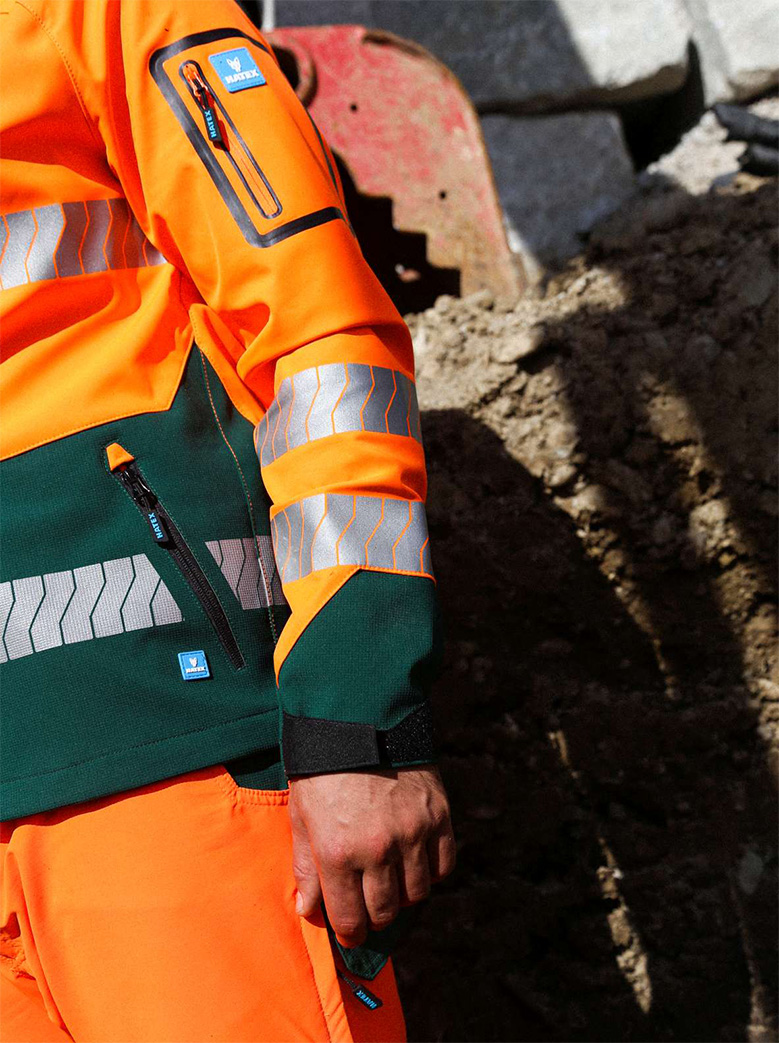 Wer auf der Baustelle nicht für die schweren Arbeiten zuständig ist, sich aber trotzdem auf eine hochwertige Warnjacke verlassen möchte, ist mit dieser Softshelljacke bestens bedient. Sie ist dünner und leichter als die Softshelljacke Rip-Stop und bietet dadurch noch mehr Tragekomfort, schützt dabei aber genauso zuverlässig vor Wind und Wetter.
