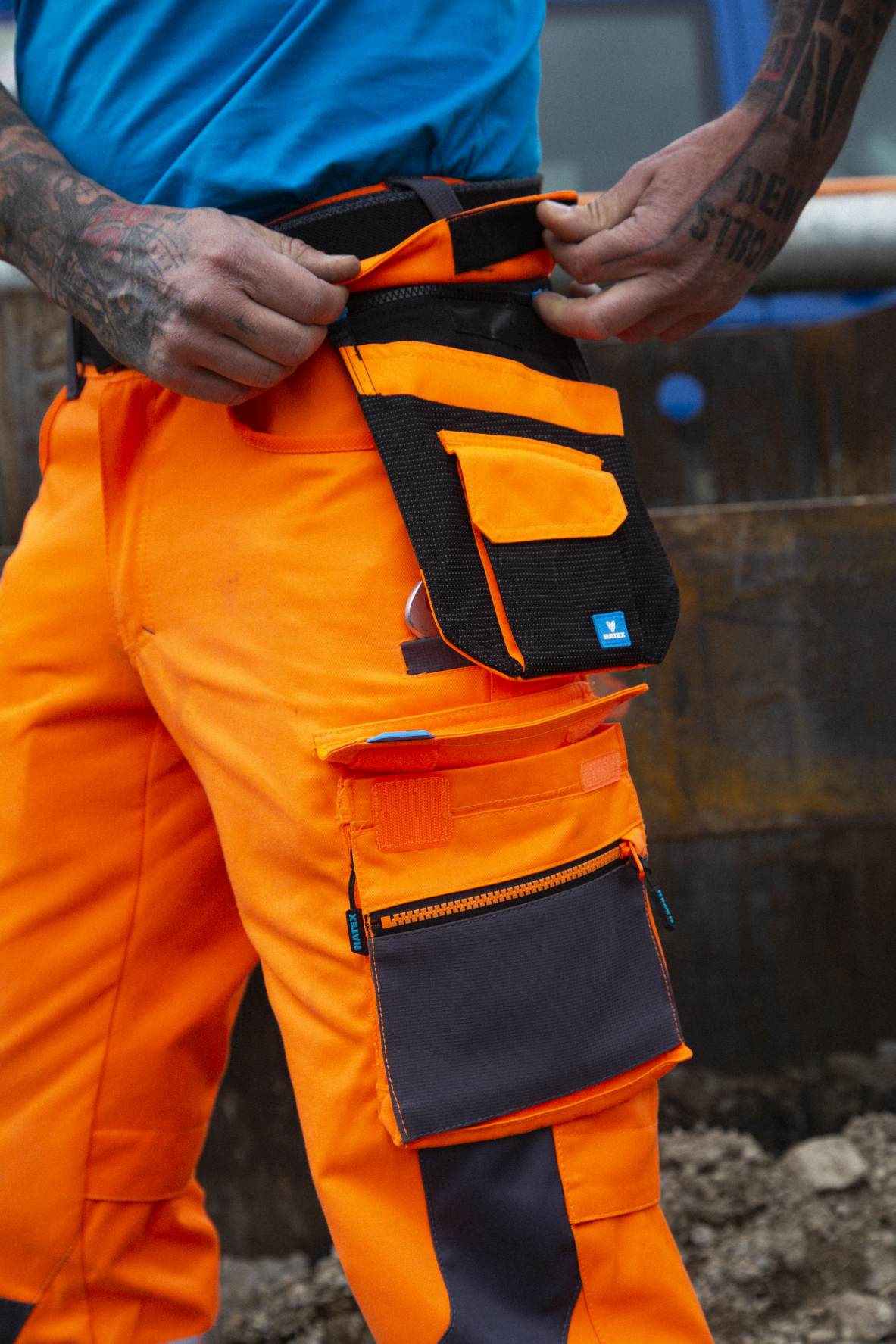 Wer sich beim Arbeiten schon mal mehr Taschen für Werkzeuge, Smartphone etc. gewünscht hat, wird von dieser cleveren Lösung begeistert sein. Die Taschen lassen sich per Reissverschluss passgenau am Kleidungsstück anbringen. Die Reissverschluss-Farbe macht klar, auf welche Seite die Tasche gehört und damit es keine Verwechslungen gibt, steht jeweils auf der Rückseite der Taschen, zu welchen Kleidungsstücken sie passen.
